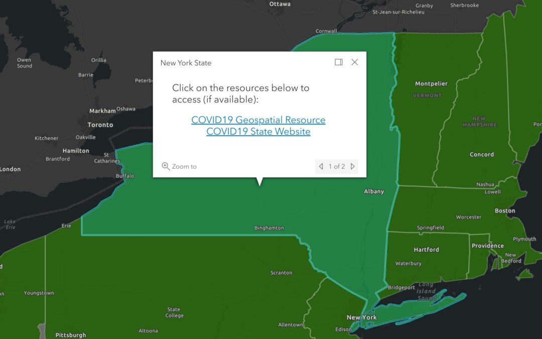 COVID-19 State-Level GIS Resource Inventory Map Apr 24, 2020 ‹ Previous Post eSpatially Game Time: Mapping Moose in New York State Next Post › Technology SWAT Team to Support New York COVID-19 Response Related Posts eSpatially - 10 Questions: Ken Stewart, NUAIR eSpatially - Geospatial Business Spotlight: Bergmann (GIS Services and Solutions) eSpatially - Google Earth in the Classrooms Map-based links to most states’ COVID-19 GIS resources: COVID-19 State-Level GIS Inventory Map